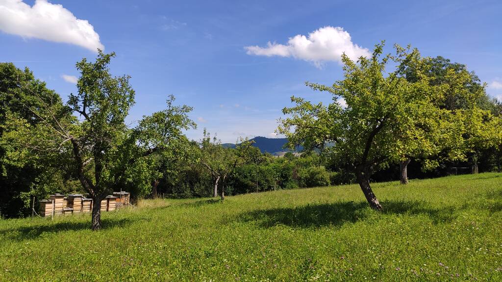Streuobstwiesen wirken sich auch positiven Einfluss auf das lokale Mikroklima aus. Sie schützen vor Regen- und Wind, spenden Schatten, oder dienen als CO2-Filter.